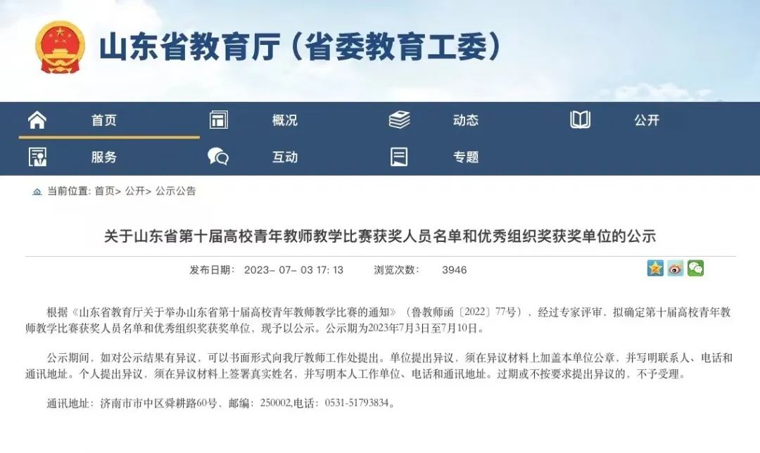近日,山东省教育厅、山东省教育工会委员会公布省第十届高校青年教师教学比赛获奖名单,公司青年教师李媛媛在全省151所高校、600余名教师中脱颖而出,从教学设计到教学展示再到教学反思,得到评委老师的一致好评,最终喜获一等奖。