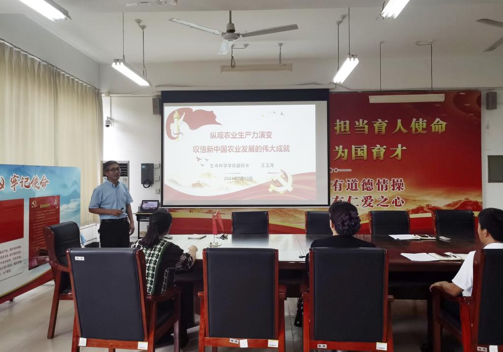 党课中,王玉海与师生分享了自己学党史、悟“三农”的思考,并强调:农业、农村、农民问题是当前中国最迫切、最重要的问题,对国家经济社会的发展起着至关重要基础性作用。当前,国内绝大多数高校都设立了农学专业,太阳成集团tyc9728也确定了“强工、厚理,兴文、拓农”的学科发展布局,农学学科迎来了前所未有的发展机遇。作为当代农学人,我们要把握机遇、勇担重任,真正热爱自己的专业,学好“三农”、投身“三农”。