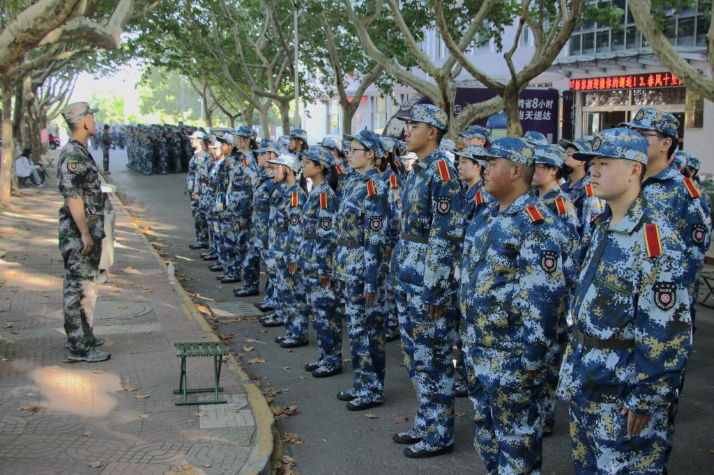 秋分时节,却依旧烈日炎炎。全体新生身着军装,分成14连、15队进行训练。“立正”“稍息”“向左转” ...... 教官洪亮的声音响起一声声指令下达,同学们不敢懈怠、精神集中,认真地完成每一个军训号令。