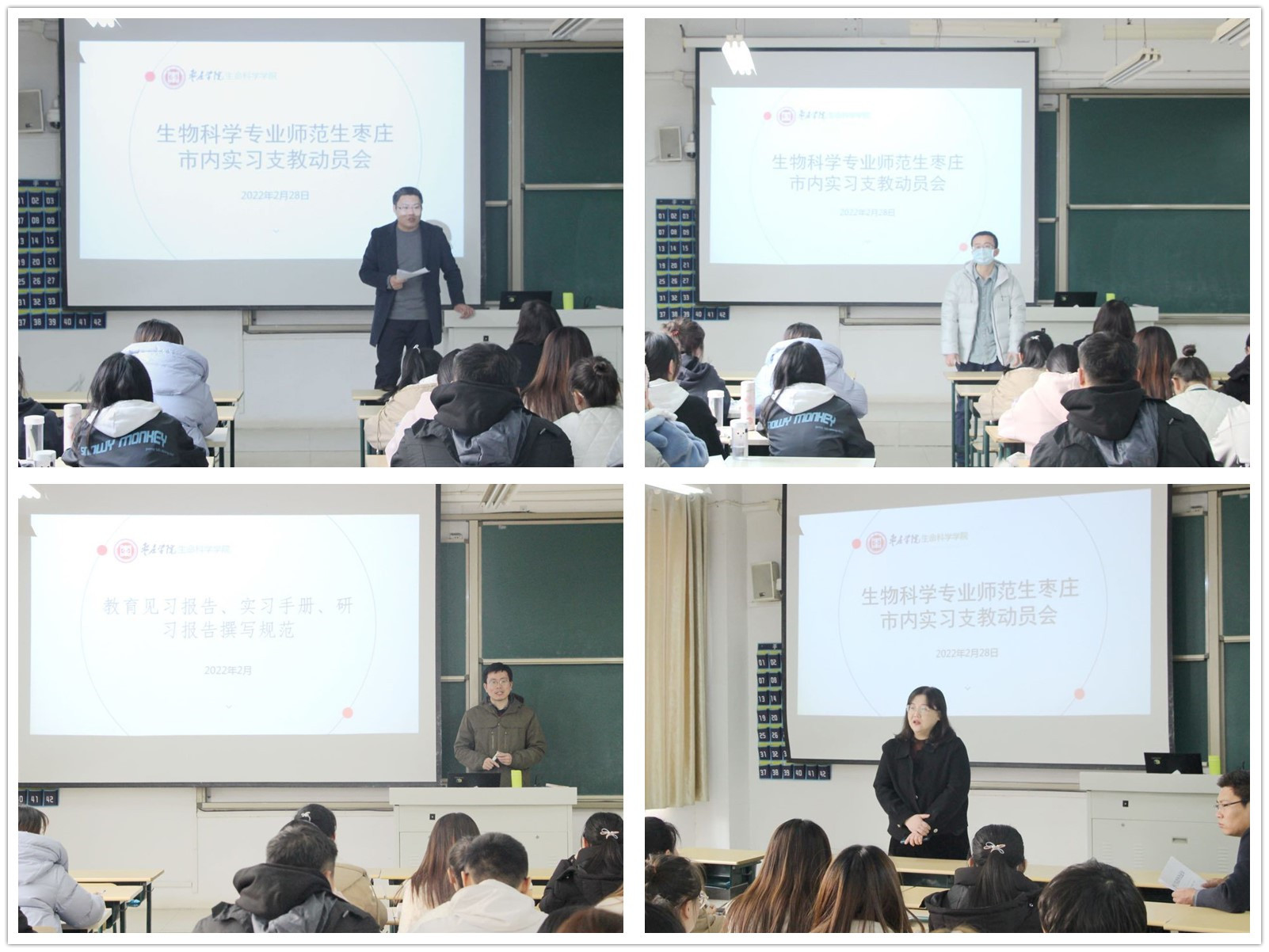 为做好2022年上半年师范生实习支教工作,加强支教师生之间的沟通交流,保障实习支教工作顺利开展,2月28日下午,太阳成集团tyc9728在理工楼208召开“2022年春季师范生实习支教动员会”。党总支副书记韩笑、专业负责人朱天顺、专业班主任苏鹏、实习指导教师薛松及2019级生物科学1班全体同学参加会议。会议由朱天顺主持。