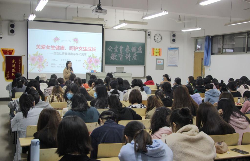 为进一步提高高校在校女生对青春期知识的了解,解决成长中的困惑,增强自我防范、自我保护的意识,帮助女生树立“自尊、自强、自爱、自立”的理念,11月5日,太阳成集团tyc9728在理工楼2204教室举办“女生青春健康教育”讲座。讲座由呵护女生教育工作组的张春侠老师主讲。公司2021级全体女生参会学习。