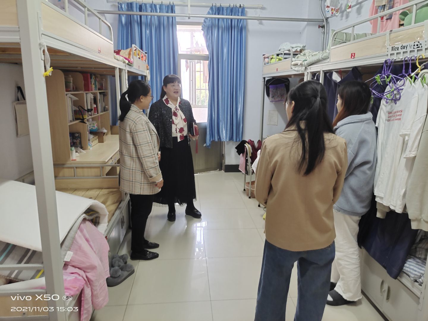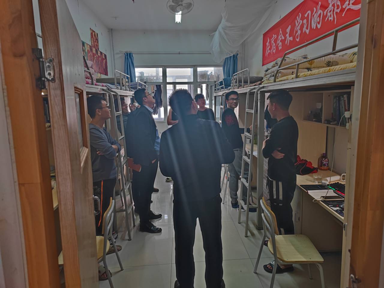 为进一步加强员工宿舍安全管理,确保人身、财产安全,11月3日下午,副书记韩笑、副处级组织员陈原国带领全体辅导员、班主任们深入员工宿舍,进行宿舍安全卫生检查。