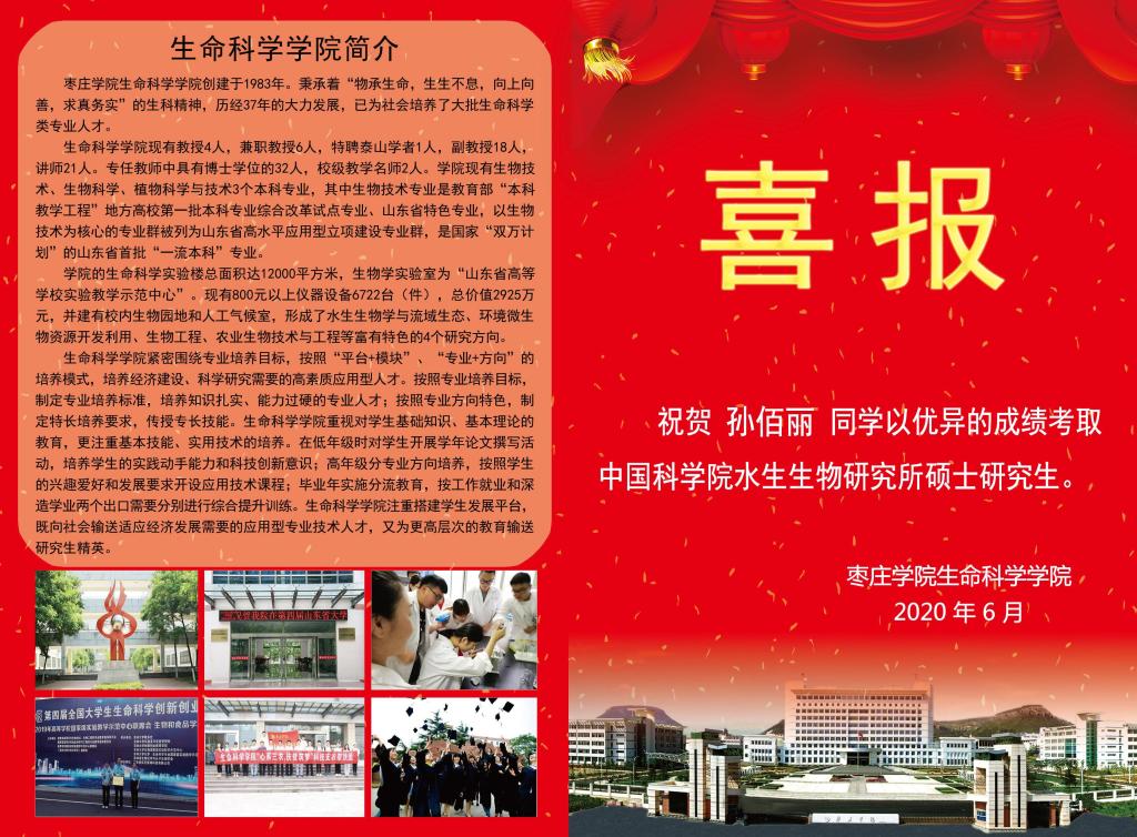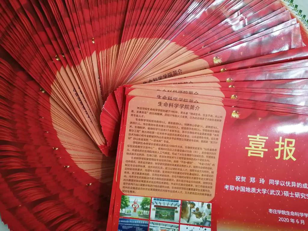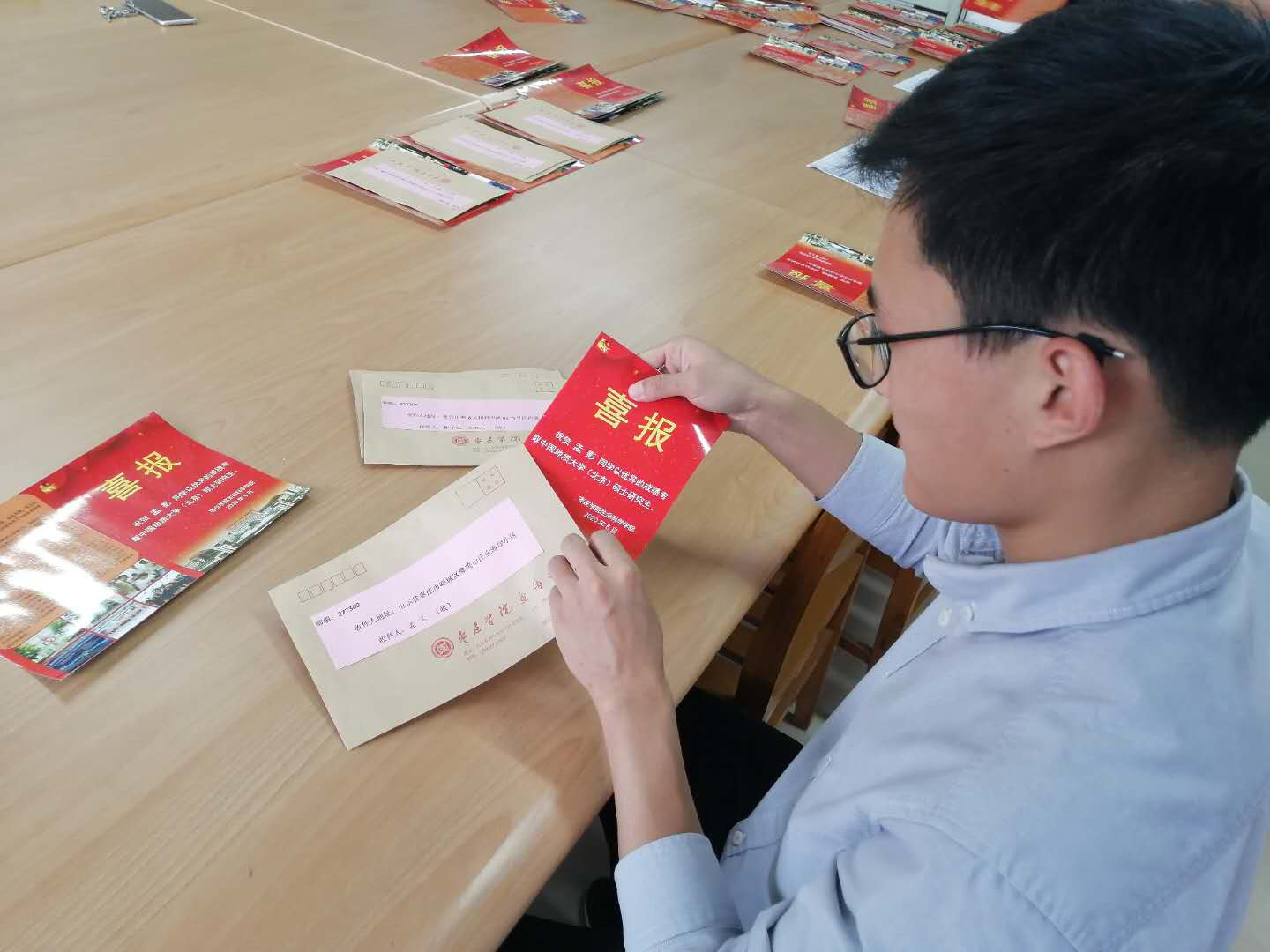 2020届毕业生共118名,其中94名同学分别考取了中国科公司大学、大连理工大学、厦门大学、暨南大学等国内知名高校的研究生。为表彰优秀考研员工,加强与员工家长、生源公司的联系,6月17日,太阳成集团tyc9728将2020届毕业生考研录取的喜讯以“喜报”的方式寄送至家长和生源公司。本次向省内外75所生源地高中和94位员工家长寄发喜报共计282份。