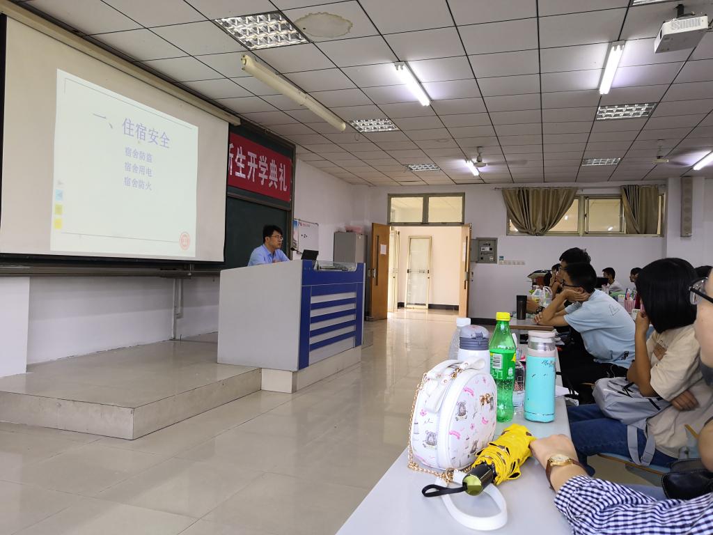 2019年9月10日上午,太阳成集团tyc9728在理工楼2205召开了安全主题教育和军训动员会议。党支部副书记陈原国,辅导员李山以及全体2019级新生参加了本次会议。