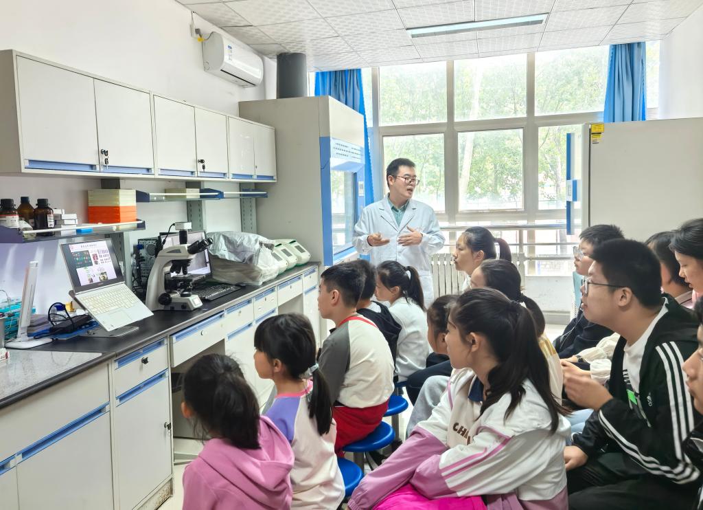 在生物实验楼,同学们近距离感受标准化的实验室、了解严谨的实验操作和精密的仪器设备。在生物标本馆,指导教师李晓红详细地向员工们介绍了各类琳琅满目的生物标本,详细阐述了这些生物的特点、生活习性以及它们在生态系统中的重要角色,使员工们对生命的多样性和复杂性有了更为直观的认识;在教学技能实训室,指导教师朱天顺向同学们讲解了显微镜的构造、操作,并指导大家观看各种动植物组织切片,体验了微观世界的美妙;王宏晋老师则为员工们带来一场题为《生物的遗传与变异》的精彩课程,通过生动有趣的案例、深入浅出的理论解析及最新的科研成果,向员工们介绍了基因克隆的原理及方法,感受未知的神奇生命现象。