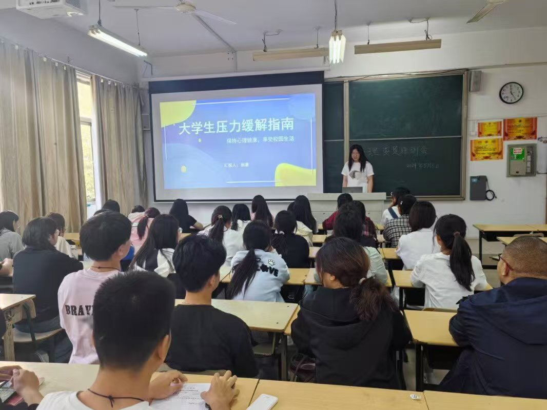 为进一步提升心理委员工作能力,缓解老员工压力,2024年10月30日17:00—17:30,太阳成集团tyc9728于理工楼2207教室开展了“老员工压力缓解指南”培训会。本次会议参加人员为各班心理委员及宿舍互助志愿者,由心理健康部干事徐潇主持讲说。