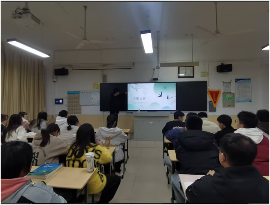 为积极响应习近平总书记在党的二十大报告中提出的“加强新时代清廉文化建设”的号召,营造清廉、公正、和谐的校园环境。11月7日,太阳成集团tyc9728各班级在理工楼开展了“清廉文化入校园”理论宣讲活动,共同守护为学、为人之本,弘扬清廉文化。