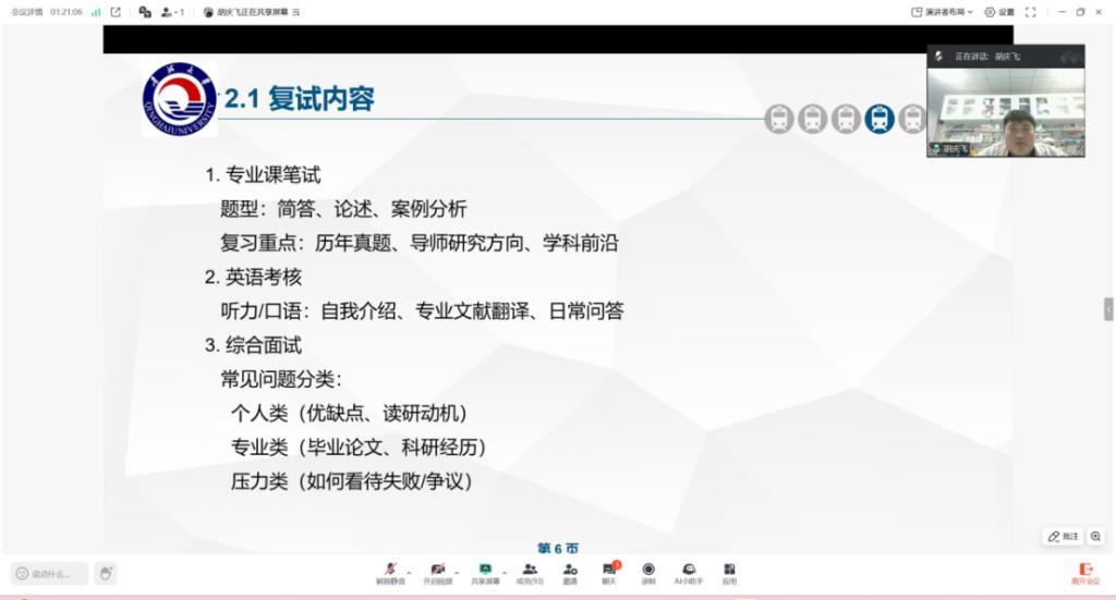 在互动答疑环节,同学们积极提问,就复试中的专业问题、调剂时的院校选择等困惑寻求解答。5位员工耐心细致地一一作答,交流氛围热烈。