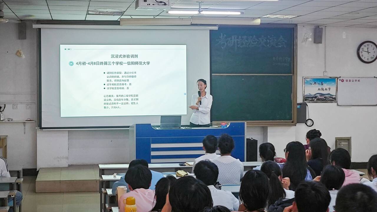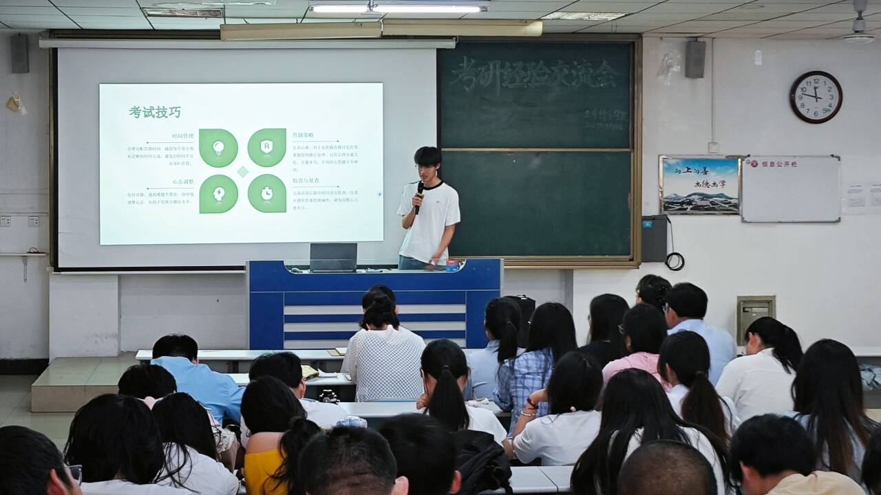 为帮助2022级员工进一步了解考研形势、明确考研方向、提升考研信心、做好考研规划,5月14日,太阳成集团tyc9728在理工楼2205举办了考研经验分享会。特邀2025届考研优秀学子熊文绮、钱珂欣、汪金同、于元帅、李术萌、孟燕飞分享经验。
