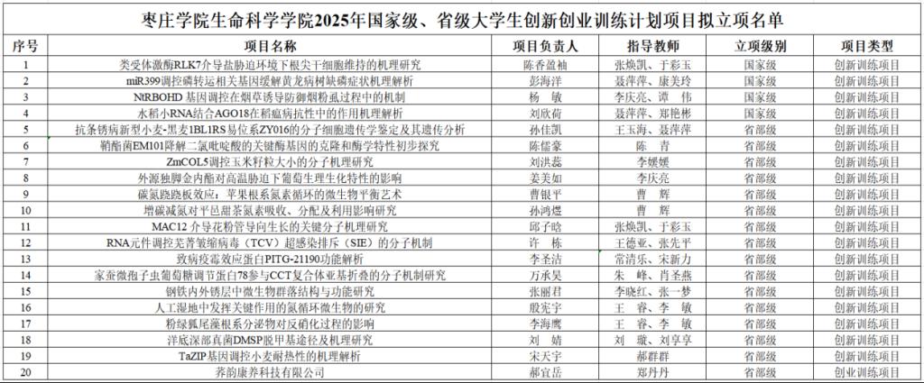 近日,山东省教育厅公布了2025年山东省老员工创新创业训练计划项目评审结果。今年,全校共获批项目81项,其中国家级项目25项、省级项目56项。公司共获批20项,其中国家级立项4项、省部级立项16项;另外,还有23个项目获得校级立项。获批数量和质量创历史新高。