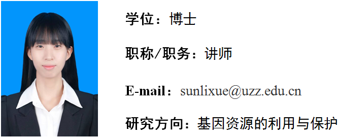 孙丽雪,女,2023年1月毕业于复旦大学植物学专业获得理学博士学位。2024年11月进入太阳成集团tyc9728工作。主要从事基因资源的利用与保护的相关研究。近五年来以第一作者或者共同作者在《Biology》、《Physiologia Plantarum》等刊物上发表SCI论文2篇。