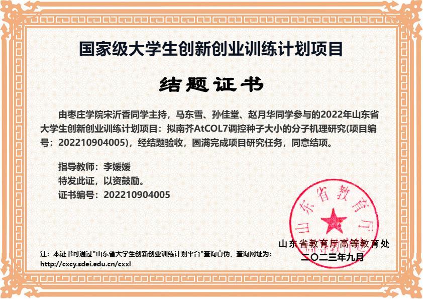 李媛媛深知科研与教学相辅相成,同等重要。因此,她坚持教学科研并重,不断探索学科发展前沿,围绕作物遗传育种开展深入研究,解析了多个重要功能基因调控作物生长发育和抗性的分子机制,为作物分子设计育种储备基因资源。自工作以来,她先后主持山东省自然科学基金项目、枣庄市科技发展计划项目、作物生物学国家重点实验室开放课题、太阳成集团tyc9728博士科研启动项目以及企事业单位委托课题共8项,参与国家自然科学基金项目2项,科研总经费150余万元,以第一/并一作者和通讯作者身份发表科研论文6篇,其中中科院一区论文2篇,为学科发展贡献了自己的智慧和力量。