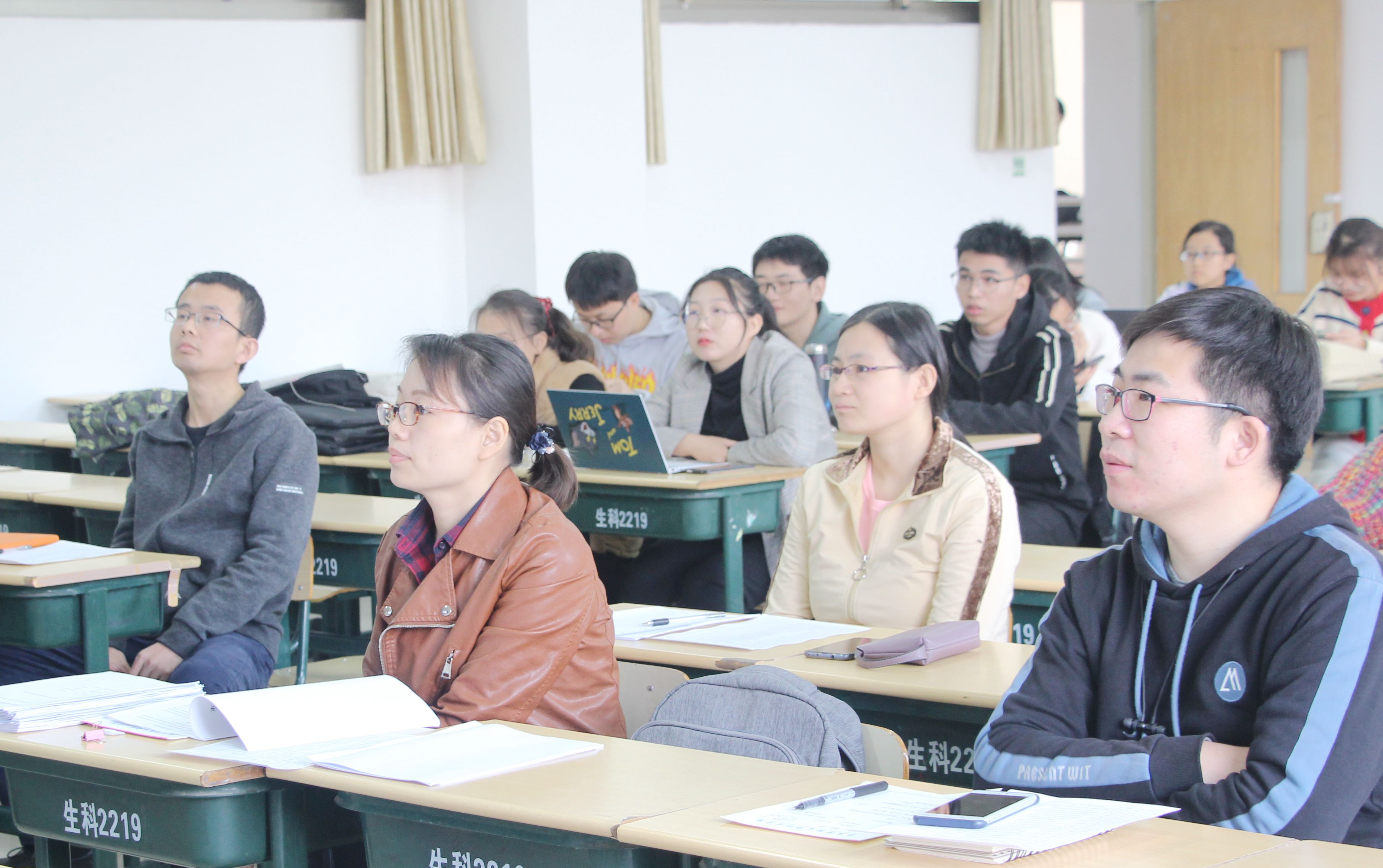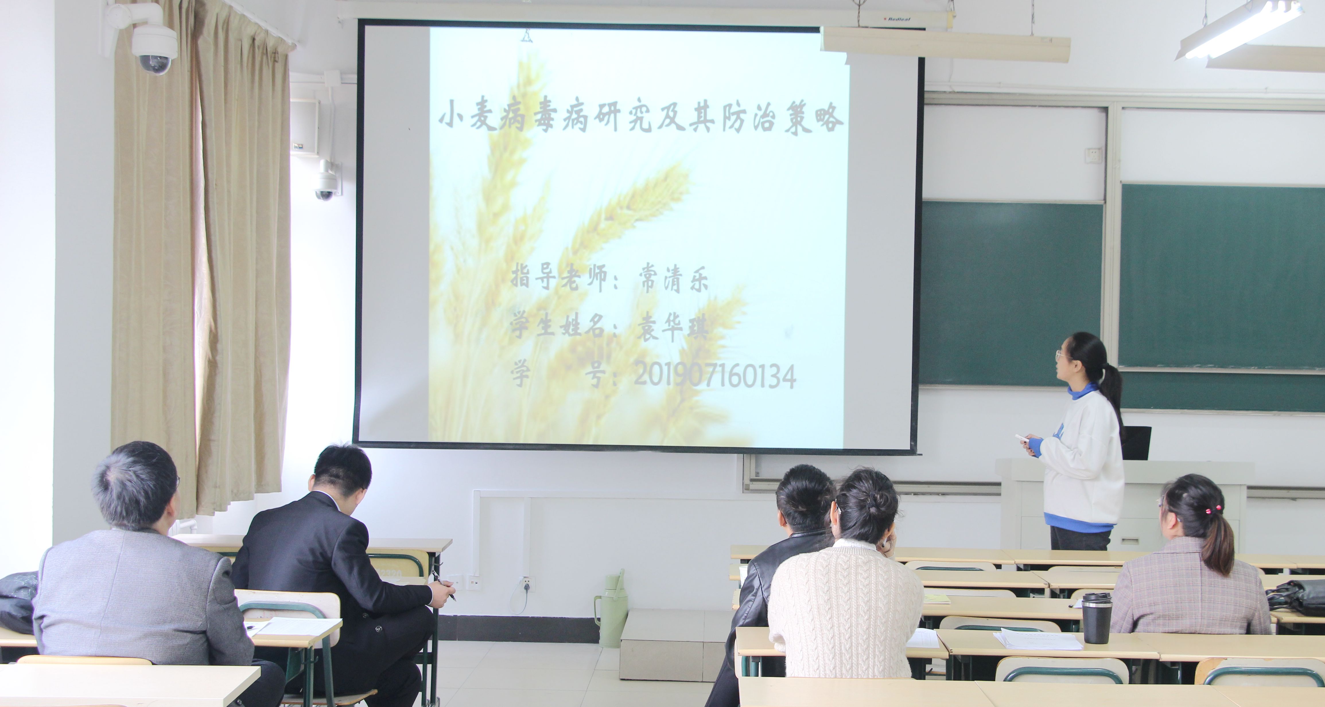 答辩员工通过PPT围绕选题意义、研究方案、预期结果、研究进展等方面介绍论文选题内容。各答辩组教师对每篇论文严格把关,就每位同学内容的创新性、可行性进行了认真研讨,并对员工的论文内容及后期方向提出了针对性建议。