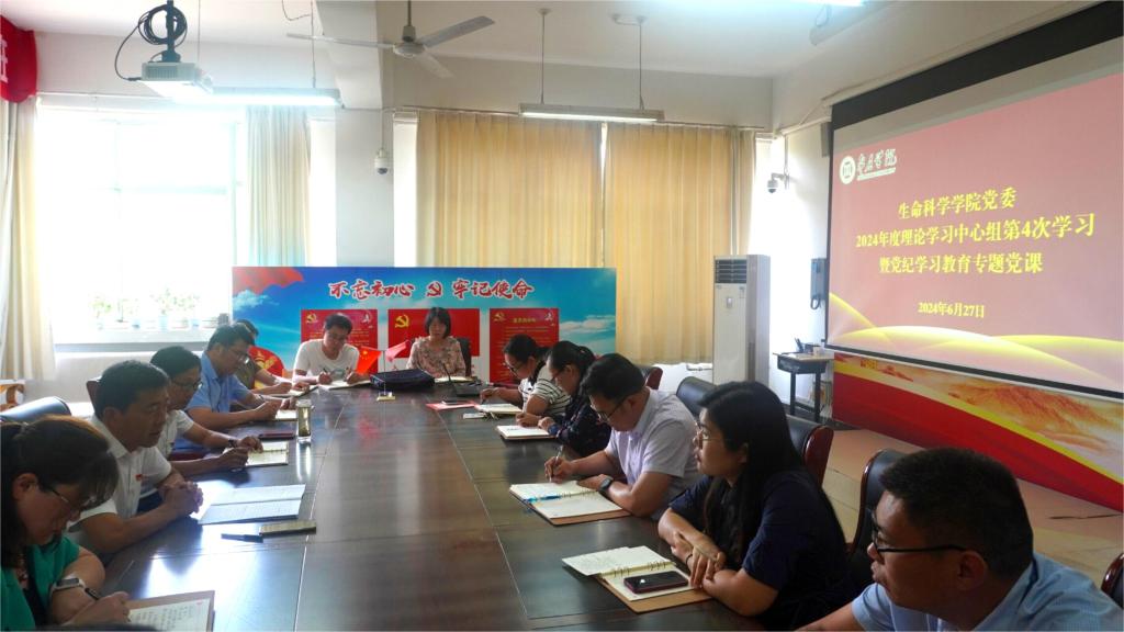 为进一步加强党员干部的党性教育,严肃党内政治生活,确保党的纪律和规矩得到严格执行,6月27日下午,生命科学学党委在理工楼2220会议室举行理论学习中心组集体学习暨党纪学习教育专题党课,公司党委班子成员、各支部委员参加此次党课,党课由党委书记郭传鑫主讲。