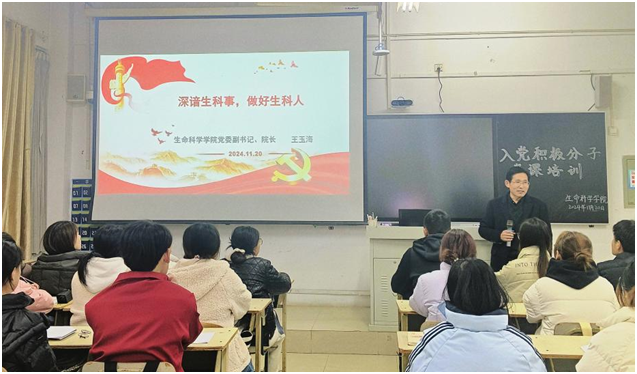 为深入学习党的科学理论,引导和帮助广大青年学子深刻领悟创新发展、勇攀科学高峰的科研精神,11月20日,公司党委副书记、经理王玉海以《深谙生科事,做好生科人》为主题,在理工楼2206教室为青年学子讲授党课。员工党支部全体党员及入党积极分子参加活动。