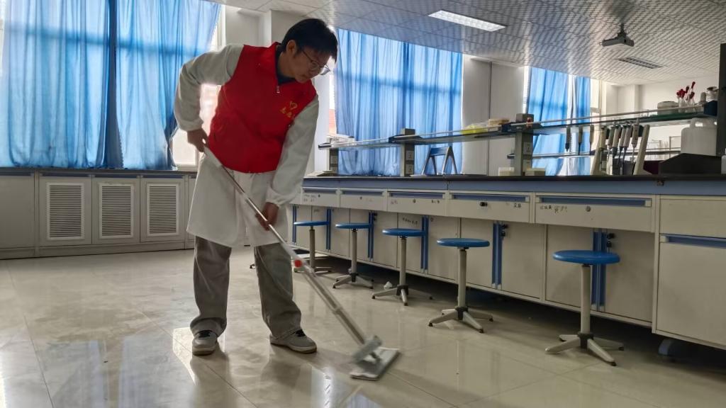 本次系列活动涵盖多项具体服务:支部党员首先对公司各教学与科研实验室进行了全面清洁与整理,为师生创造更为洁净、安全的实验环境;同时,在公司楼内设立了“暖心服务站”,配备雨伞、急救箱等物资,为师生提供日常应急便利;此外,党员们还主动清洗了多间教室的窗帘,有效改善了学习空间的采光与整体氛围。这些举措从师生实际需求出发,于细微处见真情,切实提升了师生的获得感与满意度。