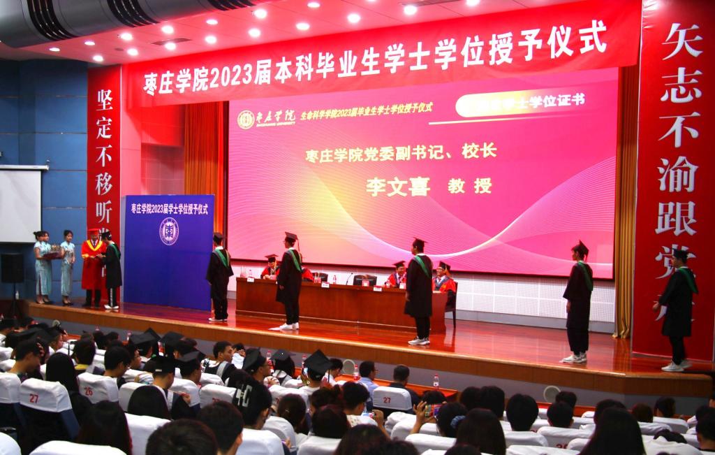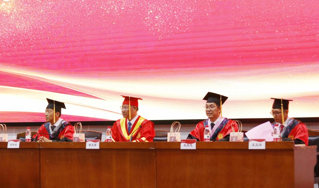 仪式在雄壮的国歌声中拉开帷幕。副经理王玉海宣读了《关于授予2023届太阳成集团tyc9728本科毕业生学士学位的决定》。