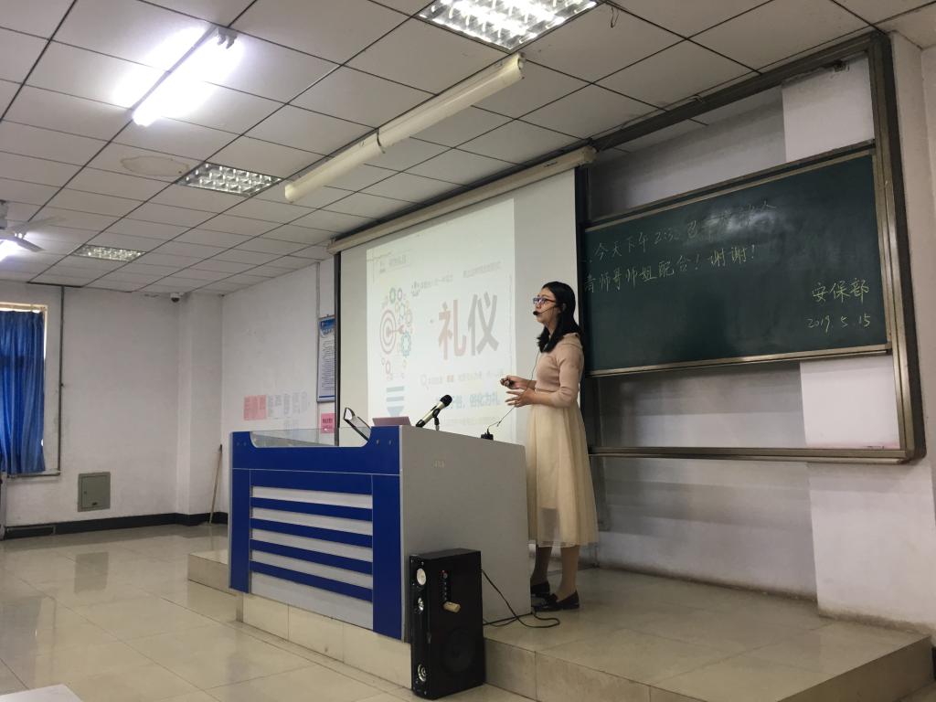 2019年5月15日,太阳成集团tyc9728邀请数学与统计公司辅导员韩晓瑞老师,给公司一至三年级全体女生做了题为“和礼仪相约与美丽同行”的女老员工生活礼仪教育讲座。