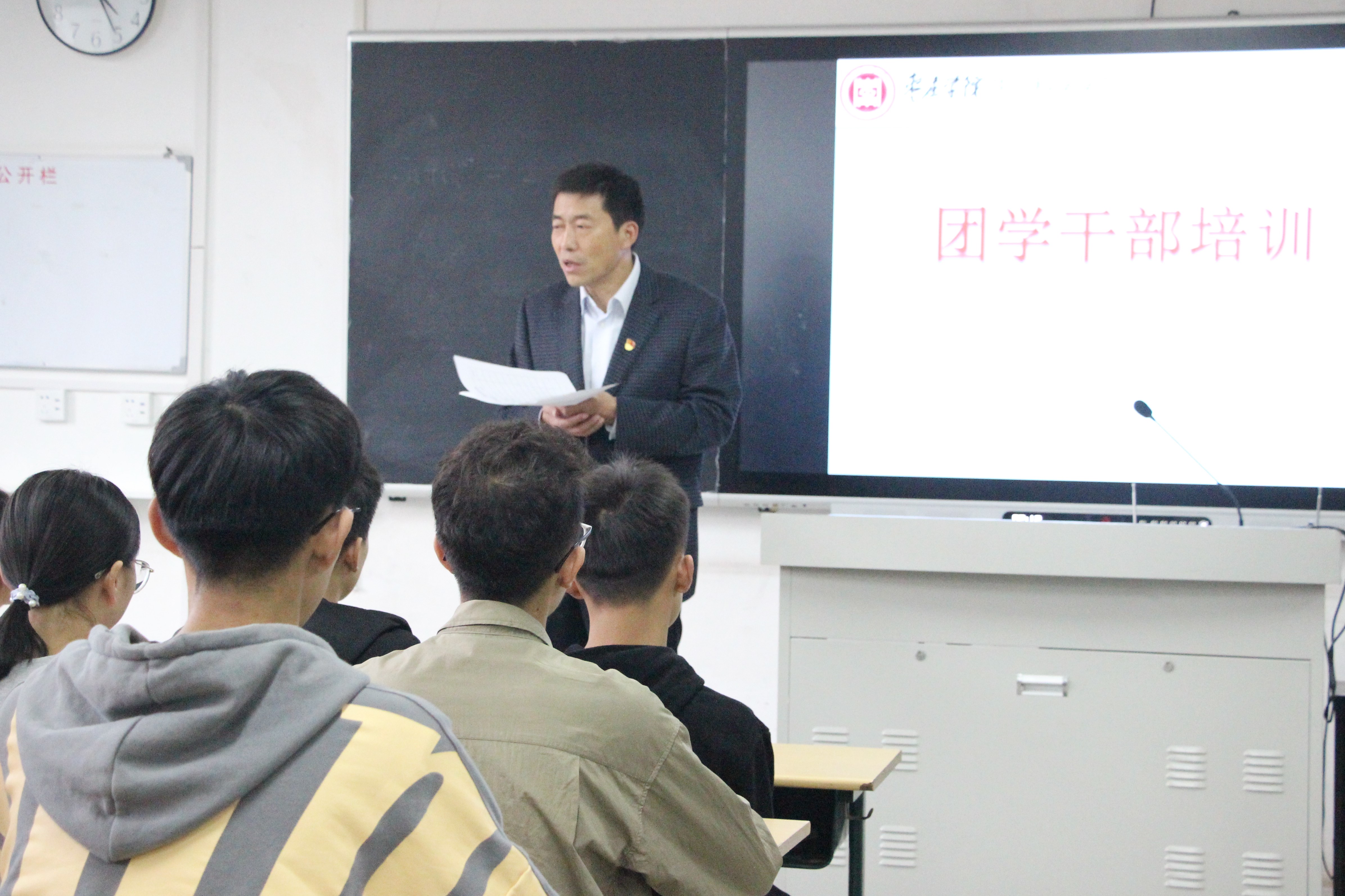 为进一步提高员工干部自身素质,太阳成集团tyc9728于11月4日下午4点在理工楼2219教室召开团学干部培训的第一课,培训对象是员工会干部、19级班长、团支书。公司党总支书记郭传鑫、党总支副书记陈原国出席了此次会议。
