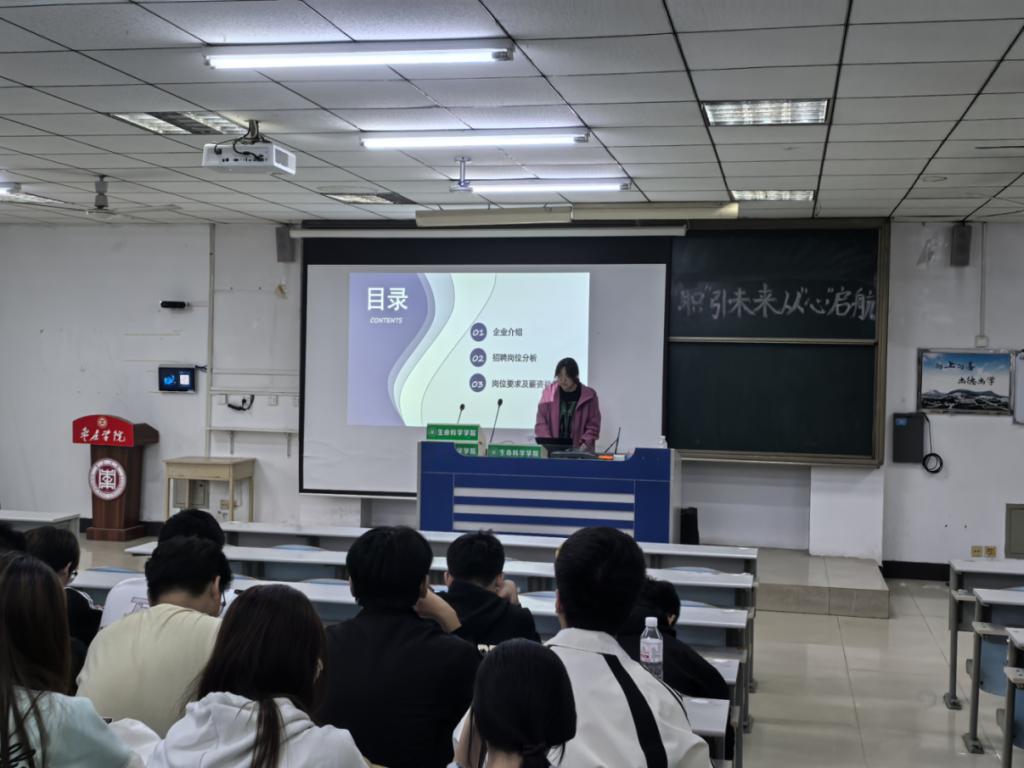 本次活动的创新之处在于,员工们从“求职者”转变为“招聘者”。他们模拟不同领域的生物科技或医药企业代表向台下的“应聘者”详细介绍公司背景、发展战略、招聘计划以及具体的岗位要求。这一角色转换极大地考验了同学们对行业认知、岗位分析和沟通表达的综合能力。现场气氛活跃,各“企业”宣讲精彩纷呈。