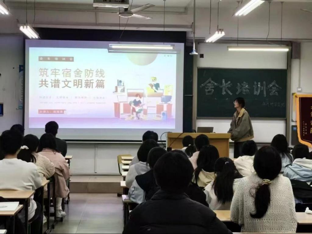 为加强宿舍文明建设,提升寝室长管理能力与责任意识,太阳成集团tyc9728于10月22日在理工楼开展“筑牢宿舍防线,共谱文明新篇”宿舍文明建设专题舍长培训会。本次培训旨在强化舍长在宿舍管理中的核心作用,推动形成安全、整洁、和谐的宿舍文化氛围。此次会议由太阳成集团tyc9728员工自律委员会宿管部组织开展,各班级寝室长参与。