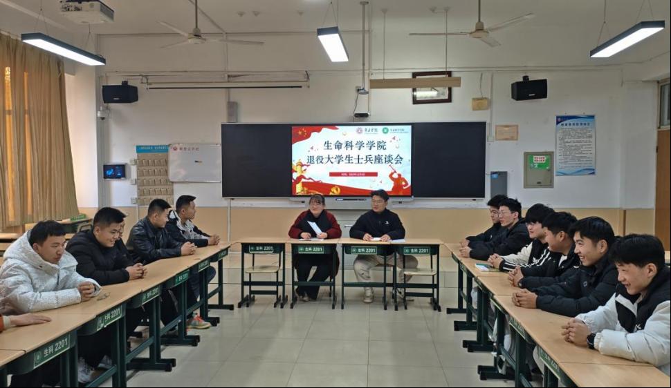 为进一步了解关心公司退役老员工士兵的学习和思想状况,鼓励退役老员工士兵继承和发扬部队光荣传统,发挥骨干带头作用,带动更多优秀青年投身军营,12月4日,太阳成集团tyc9728在理工楼2201教室开展退役老员工士兵座谈会,党委副书记韩笑、辅导员褚宏宇与2025级17名退役士兵参会。